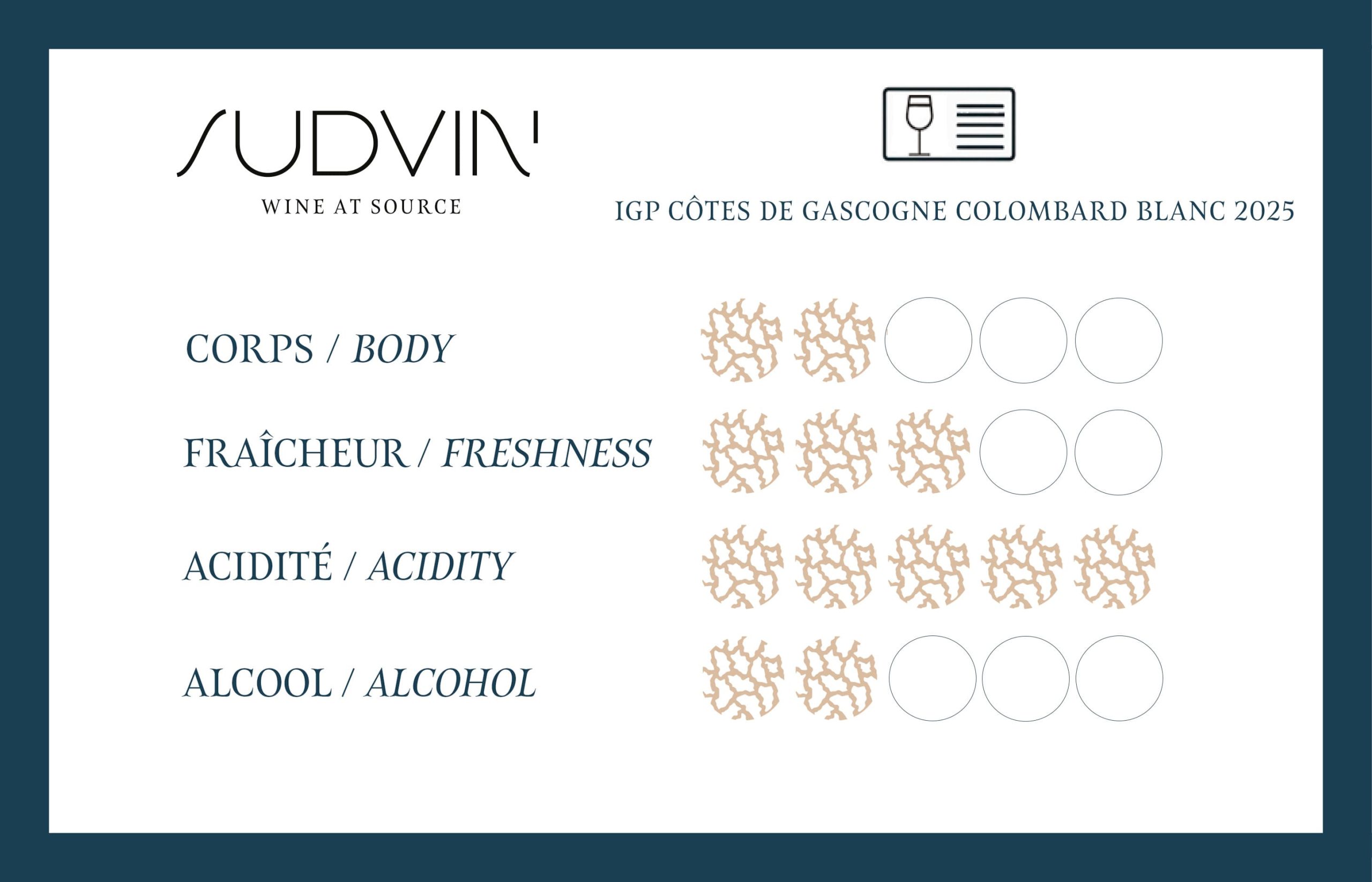 Exemple d’analyse d’un lot vrac de cet référence, fourni à titre indicatif.IGP COTES DE GASCOGNE